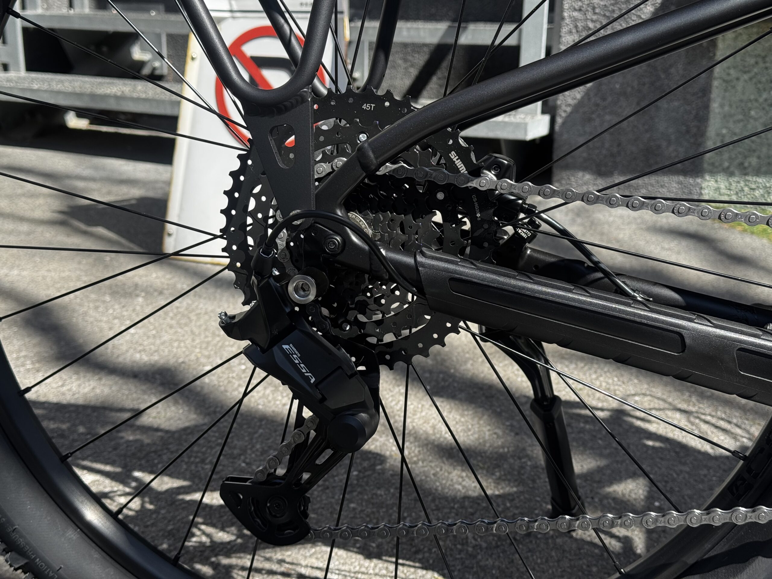 マウンテンバイクのハンドルバーは長いものがついており、体格などに応じて両端をカットして、扱いやすい長さに調整できます。今回はハンドルバーをそのままの長さでご納車いたしました。ご要望に応じてカットもできますのでお気軽にご相談ください。